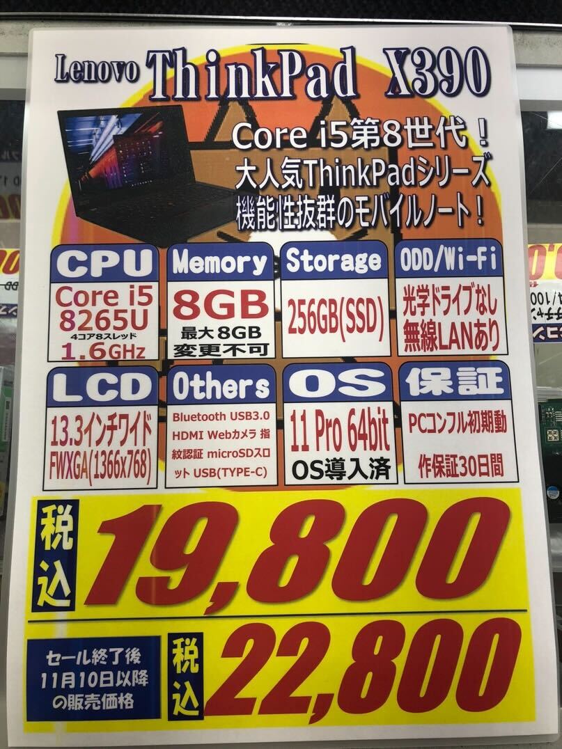 Lenovo「ThinkPad X390」 税込19,800円
