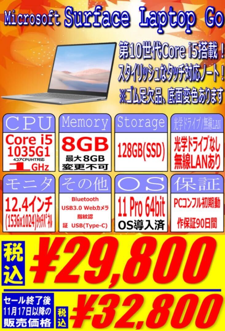 その2 Surface Laptop Go 128GB 税込み価格 ¥29,800- 台数 10台