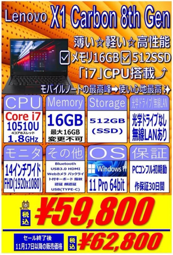 Lenovo「ThinkPad X1 Carbon 8th Gen」 税込59,800円