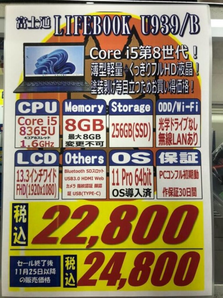 富士通「LIFEBOOK U939/B」 税込22,800円