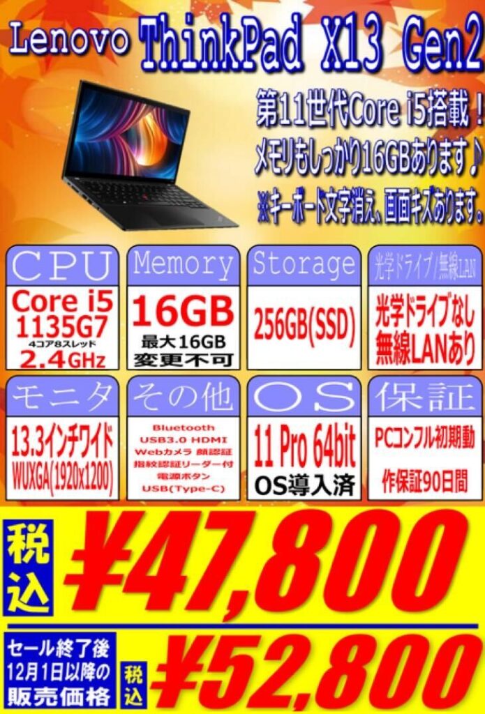 Lenovo「ThinkPad X13 Gen2」 税込47,800円
