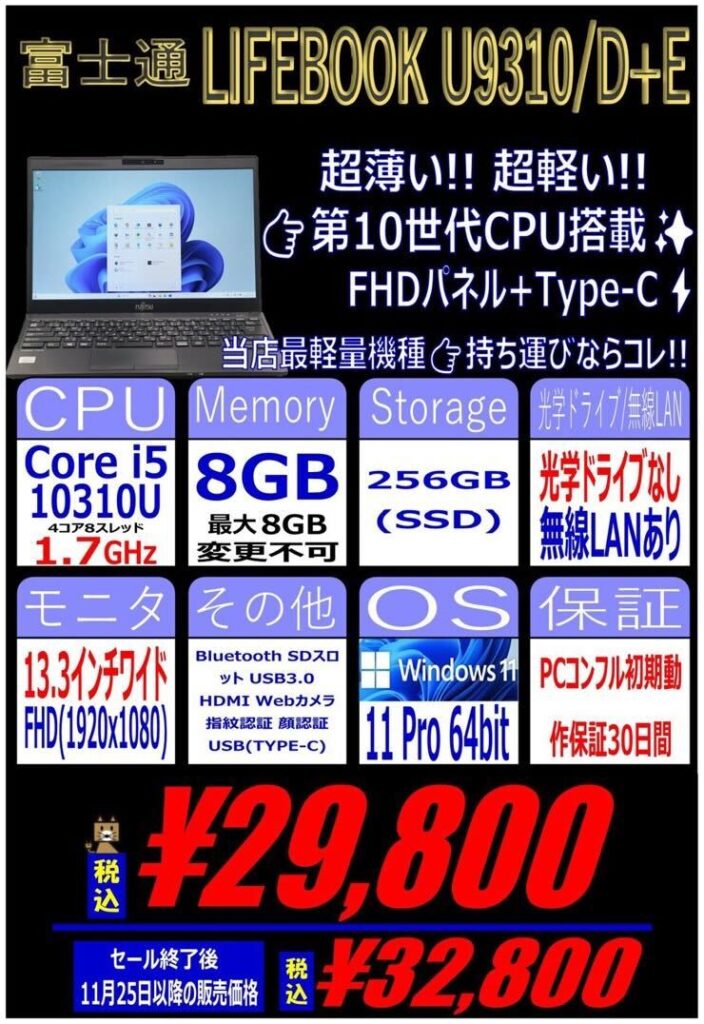富士通「LIFEBOOK U9310/D+E」税込29,800円