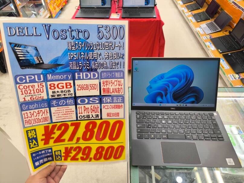 第10世代 Corei5搭載、8GB / 256GB SSD、13.3インチワイドFHD、Windows 11 proという構成で29,800円です。