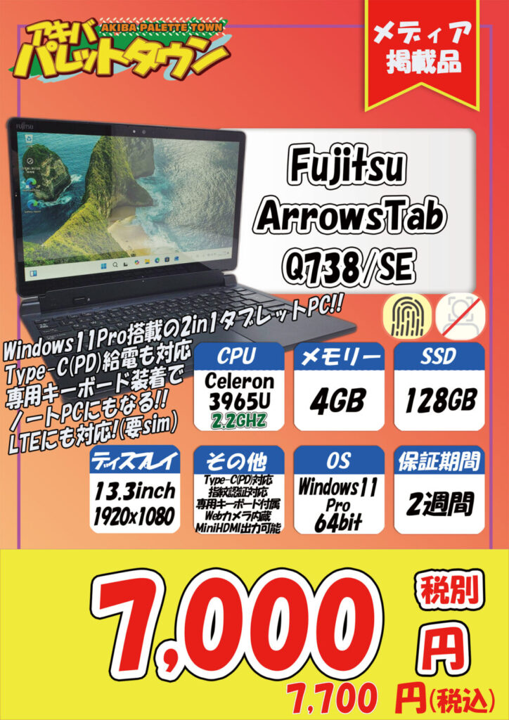 富士通「ArrowsTab Q738/SE」税込7,700円