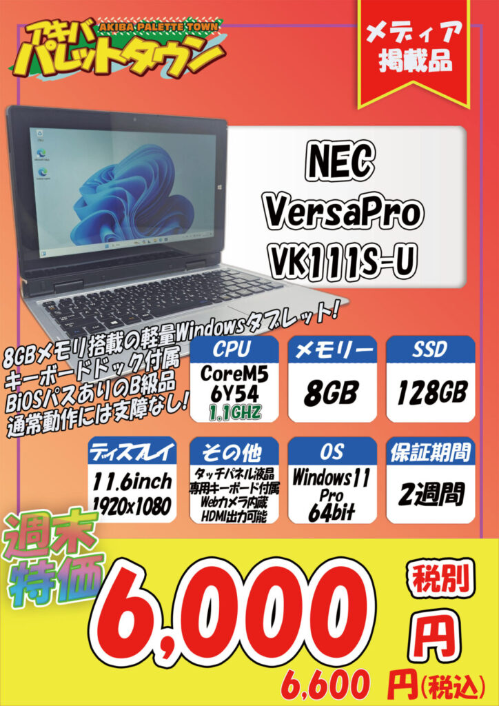 NEC「VersaPro VK111S-U1」税込6,600円