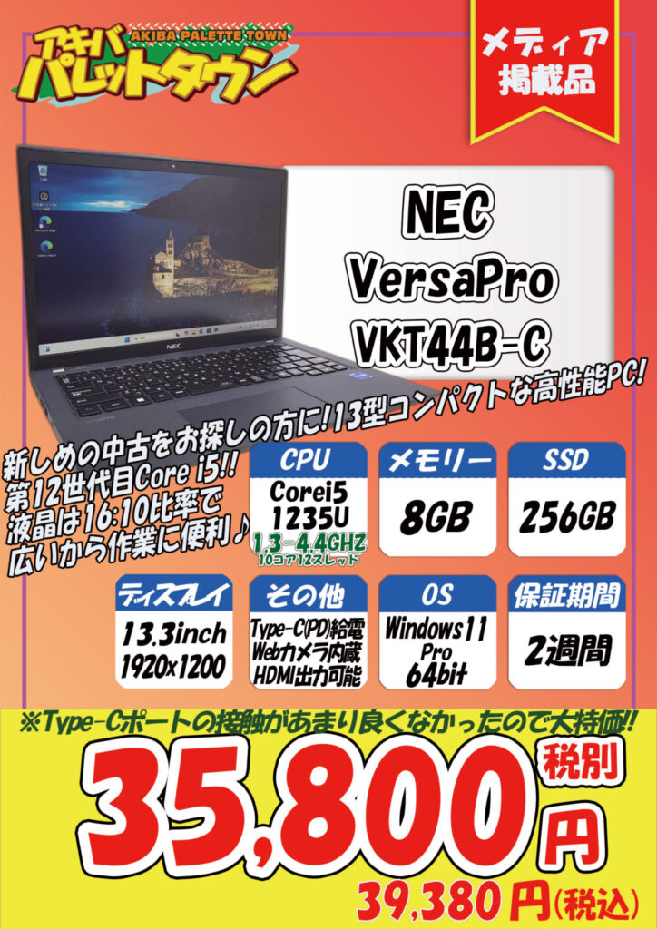 NEC「VersaPro VKT44B-C」税込39,380円