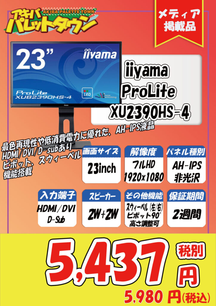 iiyama「ProLite XU2390HS-4」税込5,980円