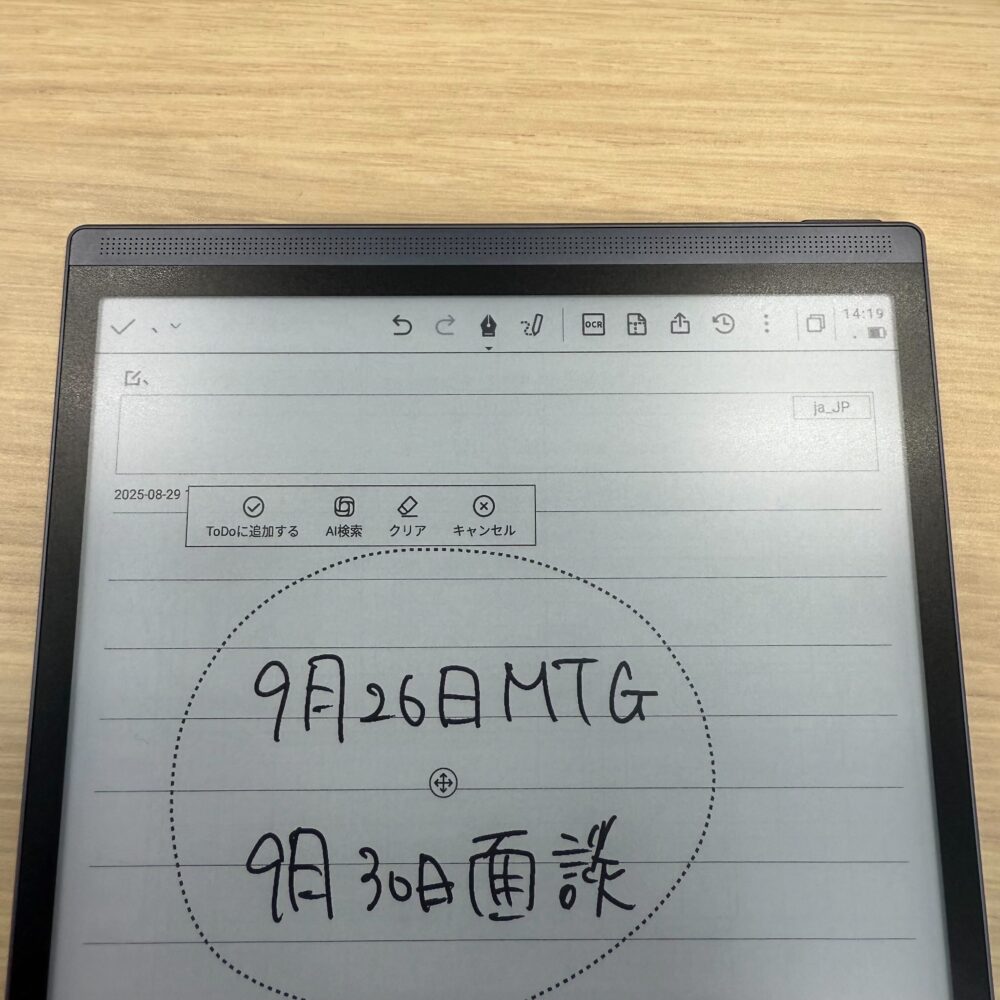 ペンの再度ボタンを押して丸で囲むと一括消去やTo Doタスク化に変換してくれます。
