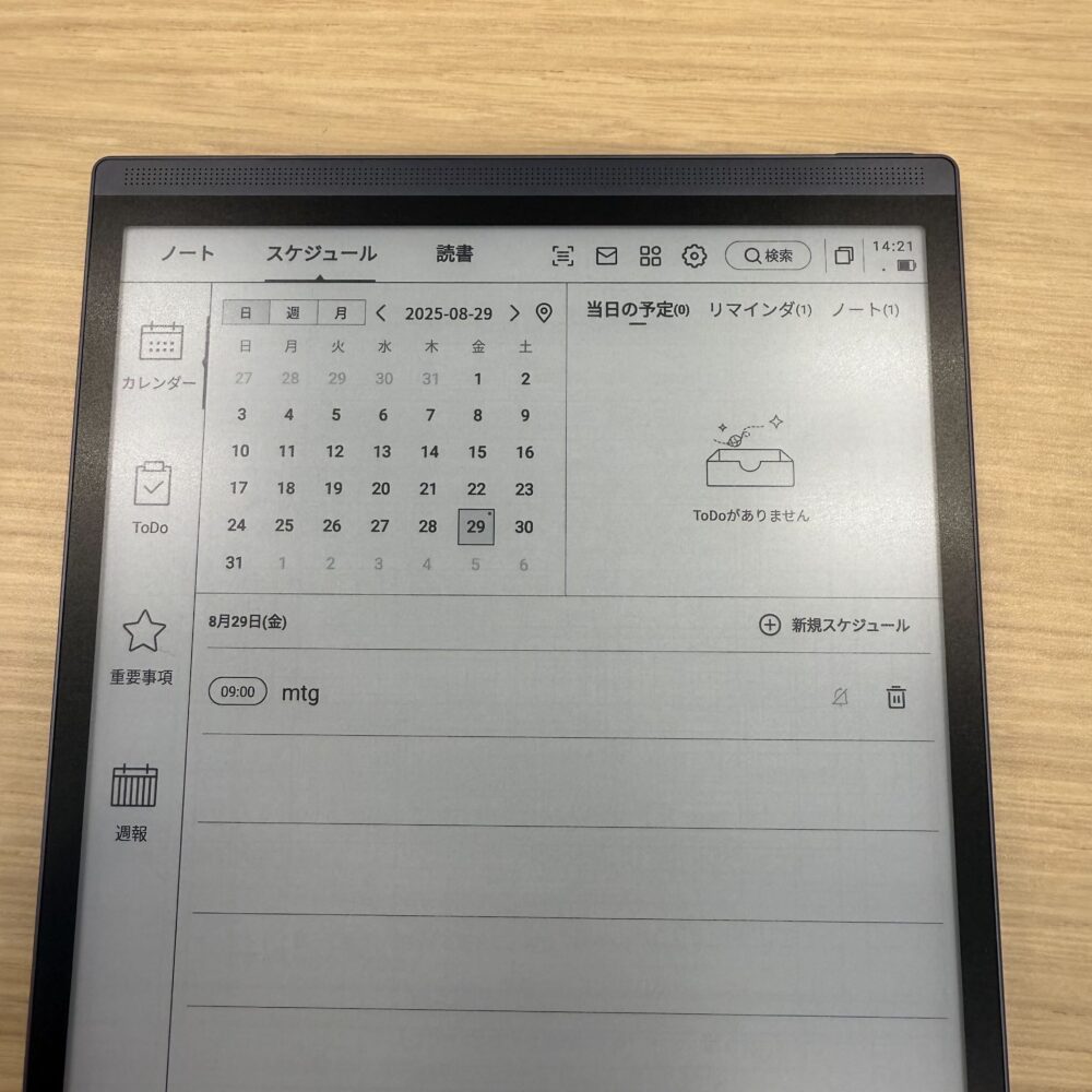 『iFLYTEK AINOTE Air 2』には「スケジュール」という機能があり、スケジュールやToDoの管理も出来ます。