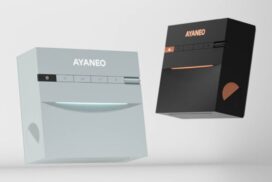 筐体デザインは、往年のゲーム機を意識した箱型の形状で、天面には電源ボタンに加え、RGBライティング調整やミュート、カスタム機能(AYASpaceソフトウェアで設定可能)を割り当てられる計5つのボタンを配置しています。カラーバリエーションはブラックとシアンの2色展開となっており、デスク周りのアクセントとして際立った存在になるでしょう。