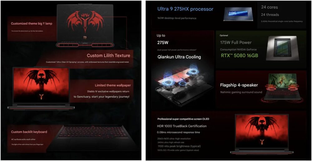 Lenovoは中国市場向けに、人気アクションRPG『Diablo IV』とコラボレーションした新型ゲーミングノートPC「Legion Y9000P Diablo IV」を発表しました。本機は、未だ市場でも希少な「NVIDIA GeForce RTX 5080 Laptop GPU」および「Intel Core Ultra 9 275HX」を搭載するハイエンドモデルです。グローバルモデルである「Legion Pro 7i Gen 10」をベースに、ファン垂涎のデザインと現行最高峰のスペックを融合させた、まさにモンスター級の1台と言えます。