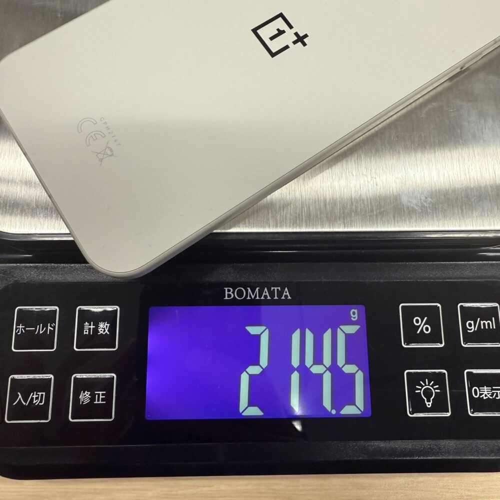 重量は214gです。大容量バッテリーが搭載してるのにも関わらず、重すぎない重量です。