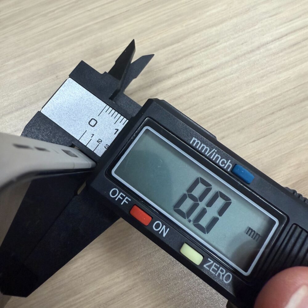 厚さは実測で8.0mmです。