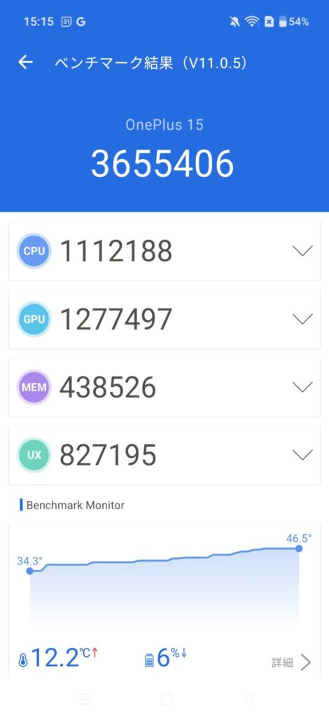 Oneplus 15は、前述した通りSnapdragon 8 Elite Gen 5搭載で、執筆時点で最新かつ最高級のSoCが搭載されています。