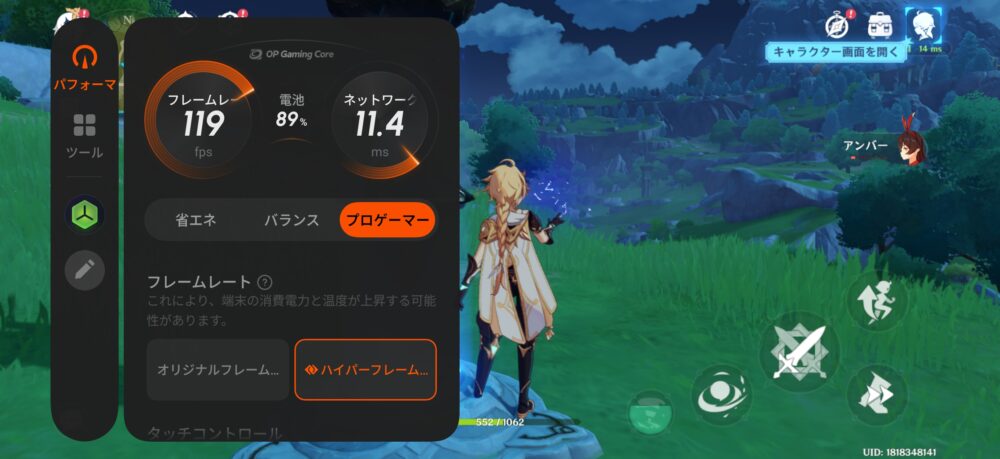 また、原神では、120FPSフレーム補間が可能なハイパーフレームレート、表示をより鮮やかにするハイパーHDR、高解像度に設定可能なハイパー解像度の3つを同時に適用できます。