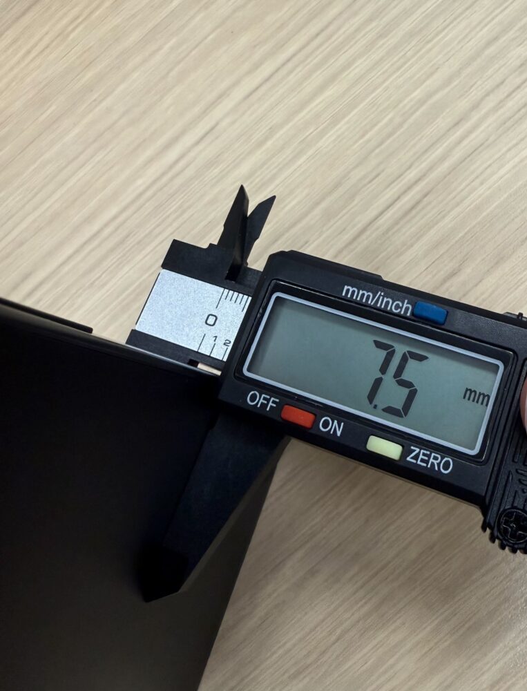 厚さは実測で7.5mmです。
