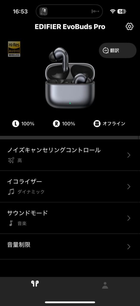 『EvoBuds Pro』は、専用アプリ「EDIFIER ConneX」に対応しています。