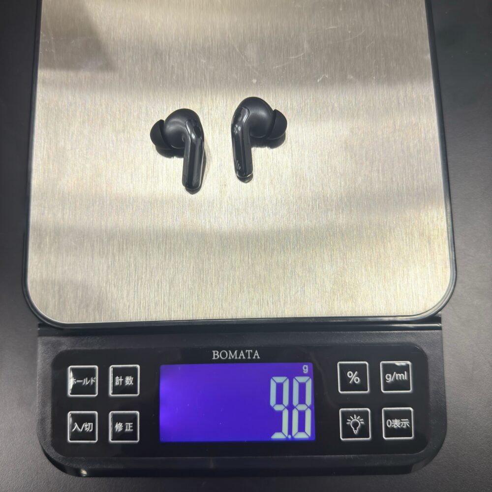 両耳で9.8g。片方5gとカナル型ワイヤレスイヤホンとしては軽量ですね。持ち運びにも便利でしょう。
