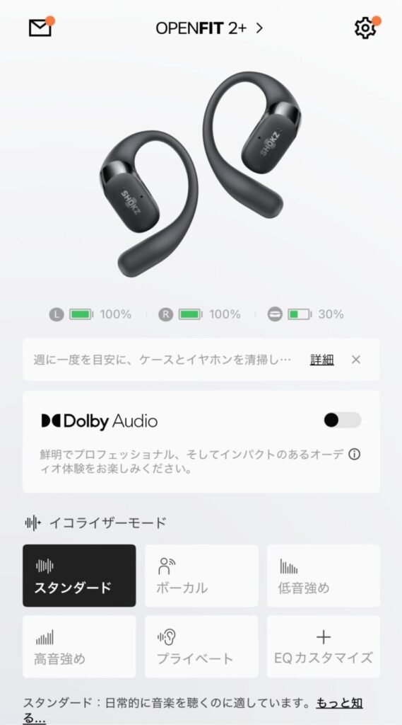 他のshokz製品と同様に、各種設定が可能です。
