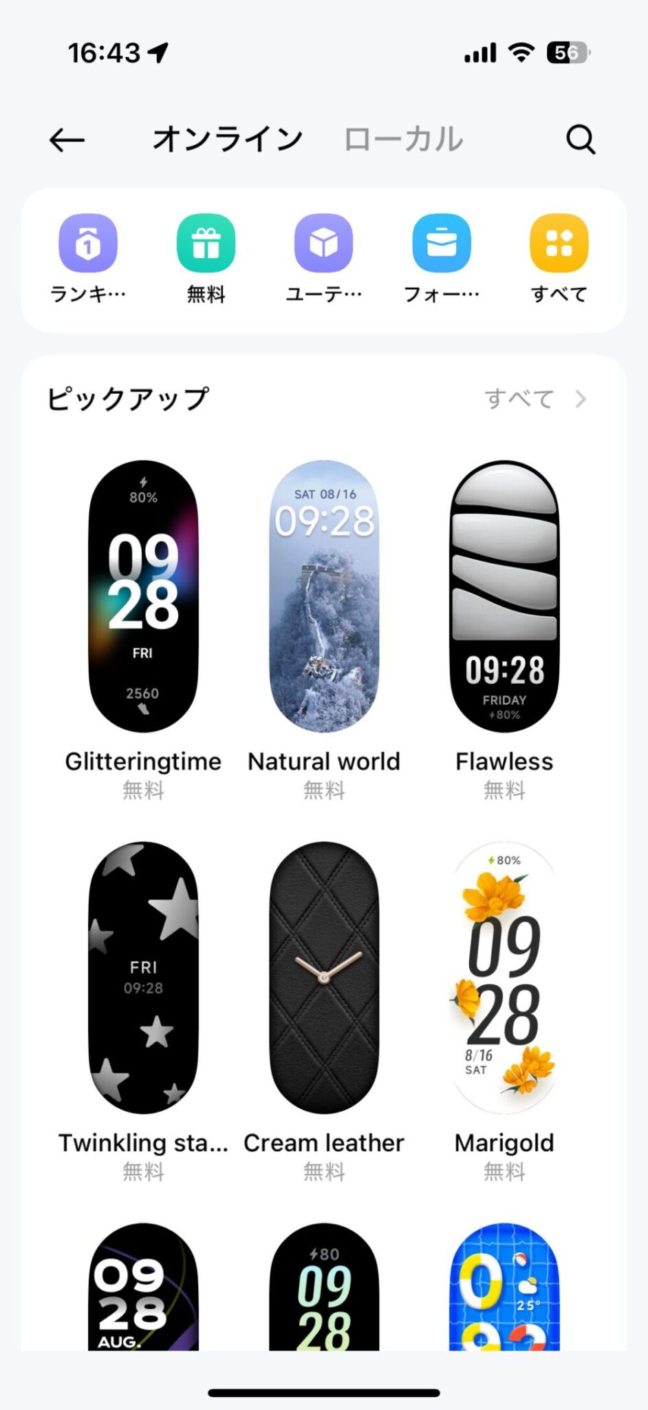 用意されている文字盤の総数は不明ですが、カテゴリー別に探すこともできて使いやすいです。