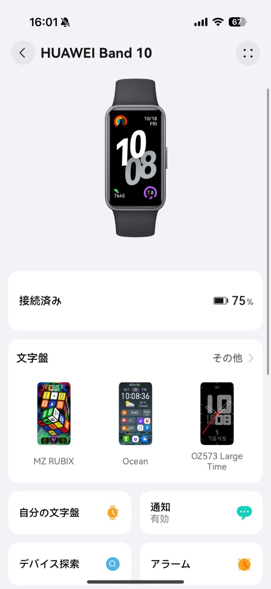 HUAWEI Band 10はコンパニオンアプリを使って文字盤を変更できます。
