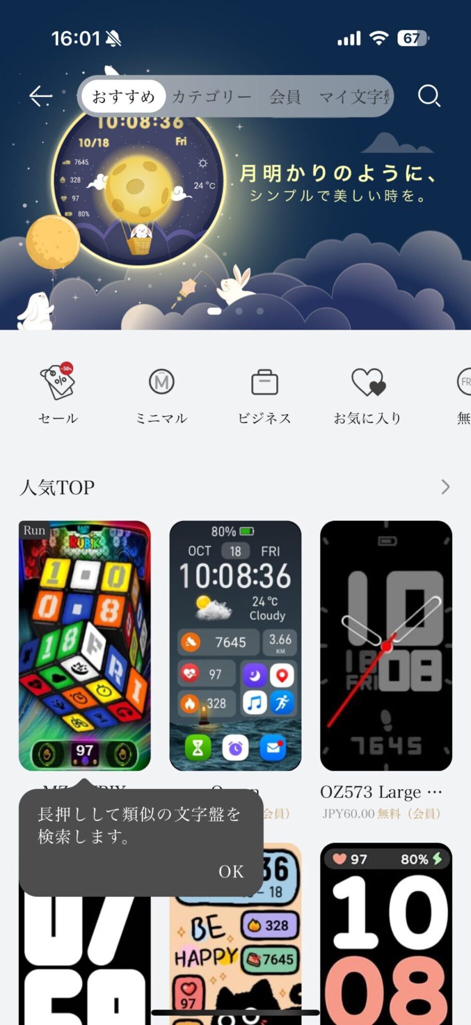 用意されている文字盤は有料・無料合わせて10,000種類以上。
