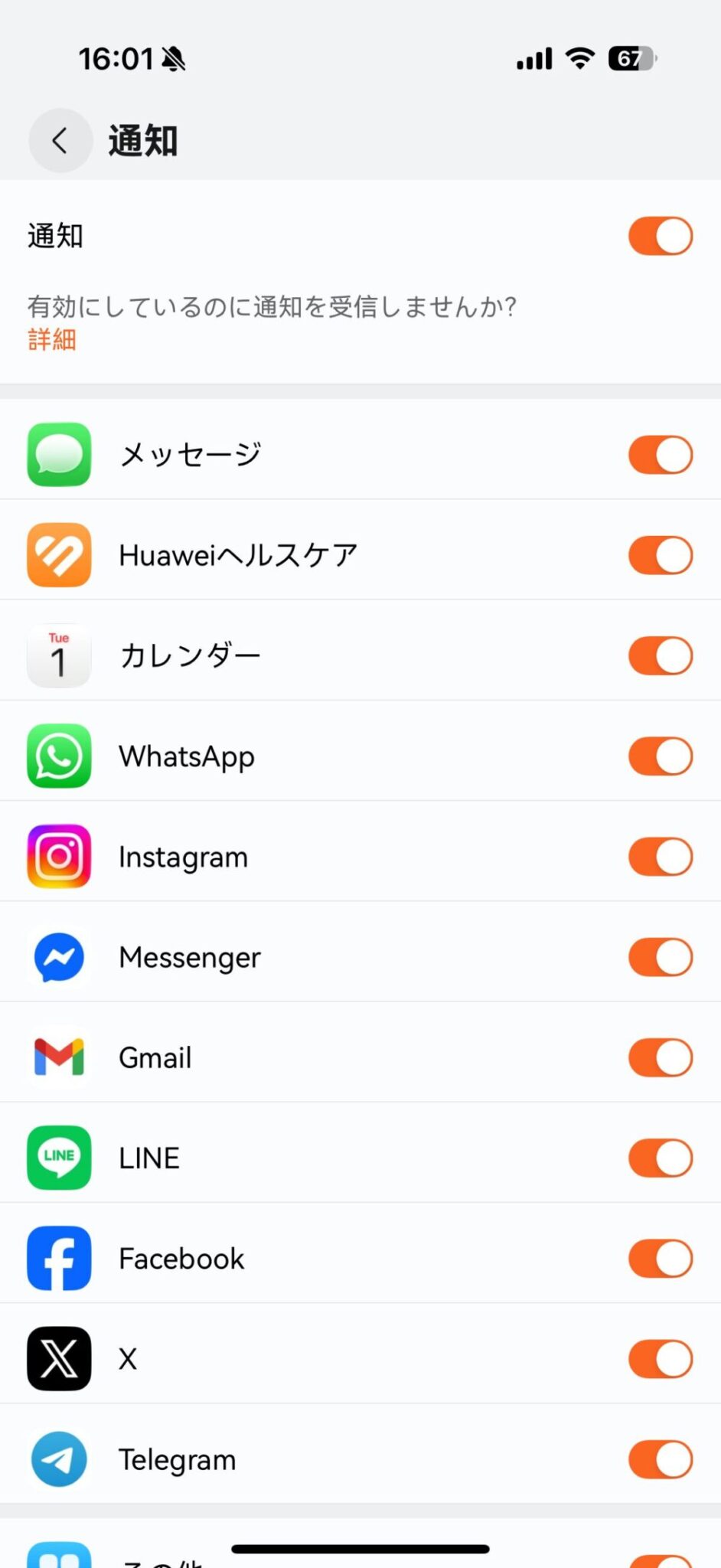 また、Androidでは通知の有無をアプリ毎に選択できるのですが、iPhoneでは限定的とのことです。