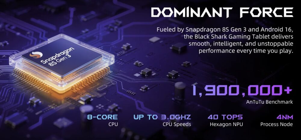 Black Shark Gaming Tabletは、QualcommのSnapdragon 8s Gen 3を搭載したゲーミング志向のAndroidタブレットです。