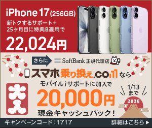 2026年の幕開けとともに、ソフトバンクのWeb販売代理店において、1月13日(火)までの期間限定で大規模な還元キャンペーンが展開されています。