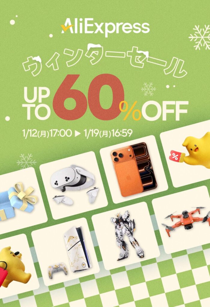 さて、そのAliExpressでは1/12(木)の17時から1/19 (木) 16時59分まで「ウィンターセール」が開催されます。