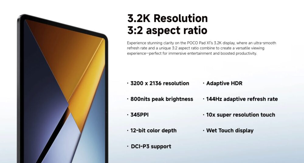 「POCO Pad X1」は、薄型軽量ボディにパワフルな性能と高品質ディスプレイを備えた11.2インチタブレットです。