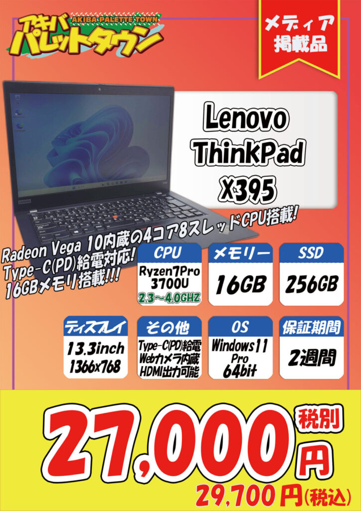 Lenovo「ThinkPad X395」税込29,700円