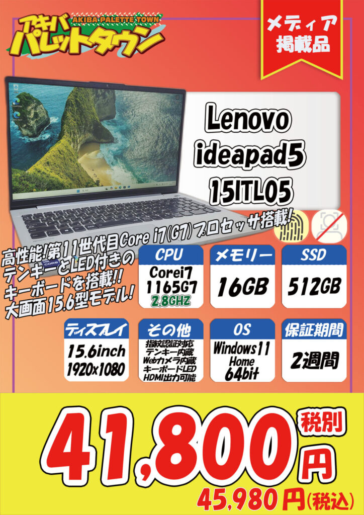 Lenovo「ideaPad5 15ITL05」税込45,980円