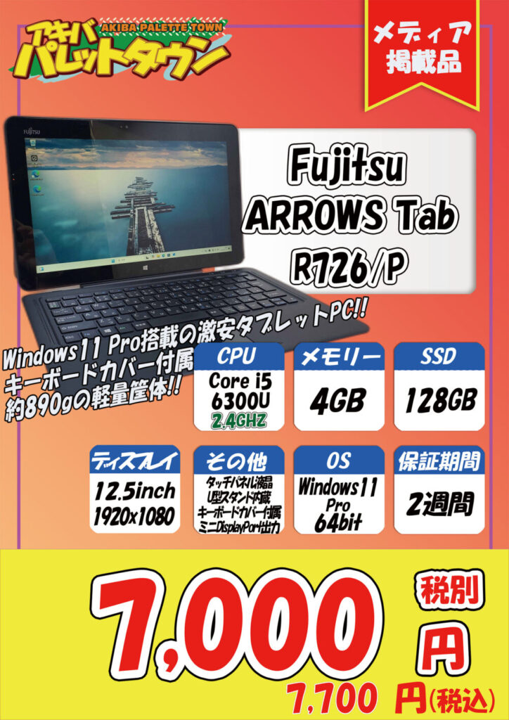 富士通「ARROWS Tab R726 P」税込7,700円
