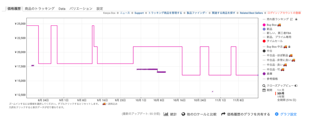 Chromeの機能拡張「Keepa」を導入することでAmazonの商品ページを開くと、その商品の価格の推移を可視化できます。