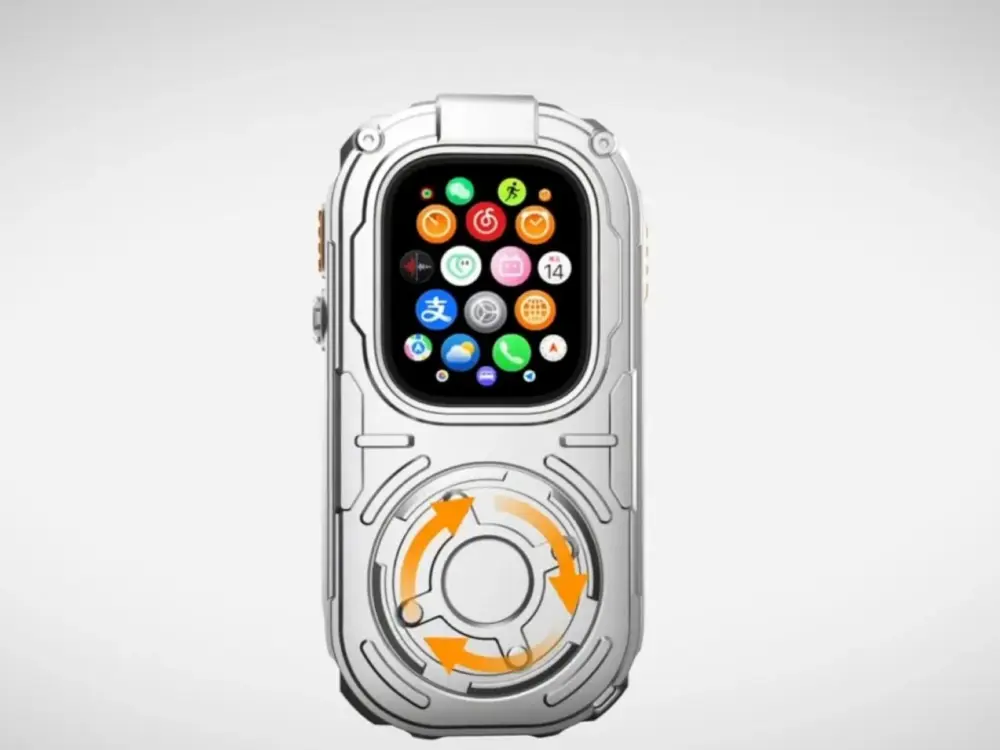「RePod Ultra」は、Apple Watch Ultraを本体にセットすることで、かつてのiPodを彷彿とさせる外観に変える専用ケースです。特徴的なのは、往年のクリックホイールを連想させる操作インターフェースを備えている点で、サイバーパンク的な美学と懐かしさを融合させたデザインが採用されています。