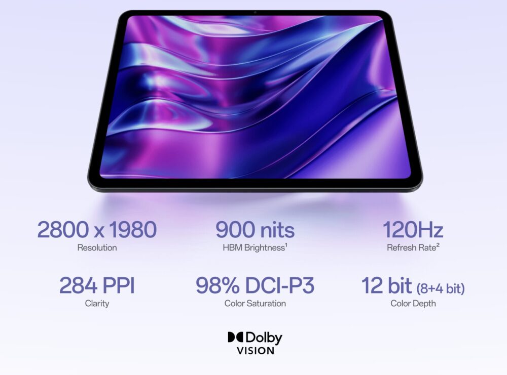 特筆すべきはディスプレイ仕様の進化です。前モデルからサイズアップした12.1インチのIPS LCDパネルを搭載し、解像度は2,800 x 1,980ピクセル、リフレッシュレートは最大120Hzに対応しています。ピーク輝度は900ニトに達し、DCI-P3色域カバー率98%、Dolby Vision HDRのサポートにより、屋内だけでなく明るい環境下でも視認性の高い、リッチな映像体験を提供します。
