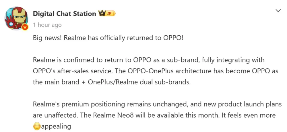 中国のスマートフォンメーカーであるOPPOが、内部のブランド構造に関する重要な組織再編を実施したことが明らかになりました。