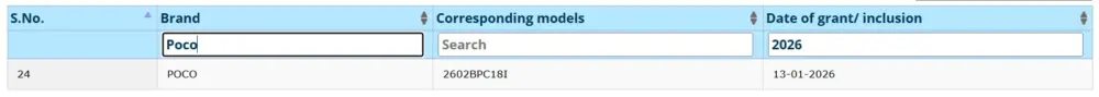 Gizmochinaの報道によると、インドのBIS(Bureau of Indian Standards)認証データベースに、モデル番号「2602BPC18I」を持つデバイスが登録されたことが確認されました。IMEIデータベースの照合情報に基づき、このモデル番号は「POCO X8 Pro Max」であると特定されています。BIS認証への登録は、インド市場での発売が差し迫っていることを意味する重要な指標です。