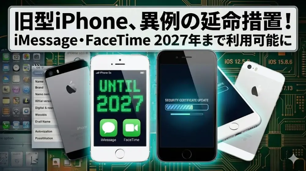 このアップデートは、発売から10年以上経過した製品も対象となっており、デバイスのセキュリティ証明書を更新することで、iMessageやFaceTimeといった主要機能の動作期限を「2027年まで」延長する重要な措置です。