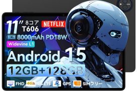 ほか、6GB RAM(最大14GB相当まで拡張可)、128GBストレージ(最大2TBのmicroSD対応)、11インチ(1920×1200)WUXGA IPSディスプレイ、Widevine L1対応、8000mAhバッテリー(18W急速充電対応)、Android 15という構成。