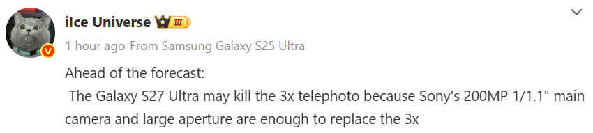 Samsungは2026年初頭にGalaxy S26 Ultraを投入予定とされていますが、それを飛び越えて2027年登場予定のGalaxy S27 Ultraのカメラ構成に関する情報がリークされました。情報源はSamsung関連の正確なリークで知られるIce Universe氏で、Weiboにて新センサーに関する情報を公開しています。