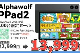 多数の廉価AndroidタブレットをリリースしているHeadwolfから、Android 15搭載11インチタブレット「Headwolf WPad6」が先着限定の先行販売セールを開始しました。