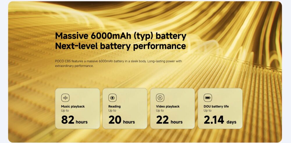 POCOの新モデル「POCO C85」は、6,000mAhの大容量バッテリーを備えたエントリー向けスマートフォンです。