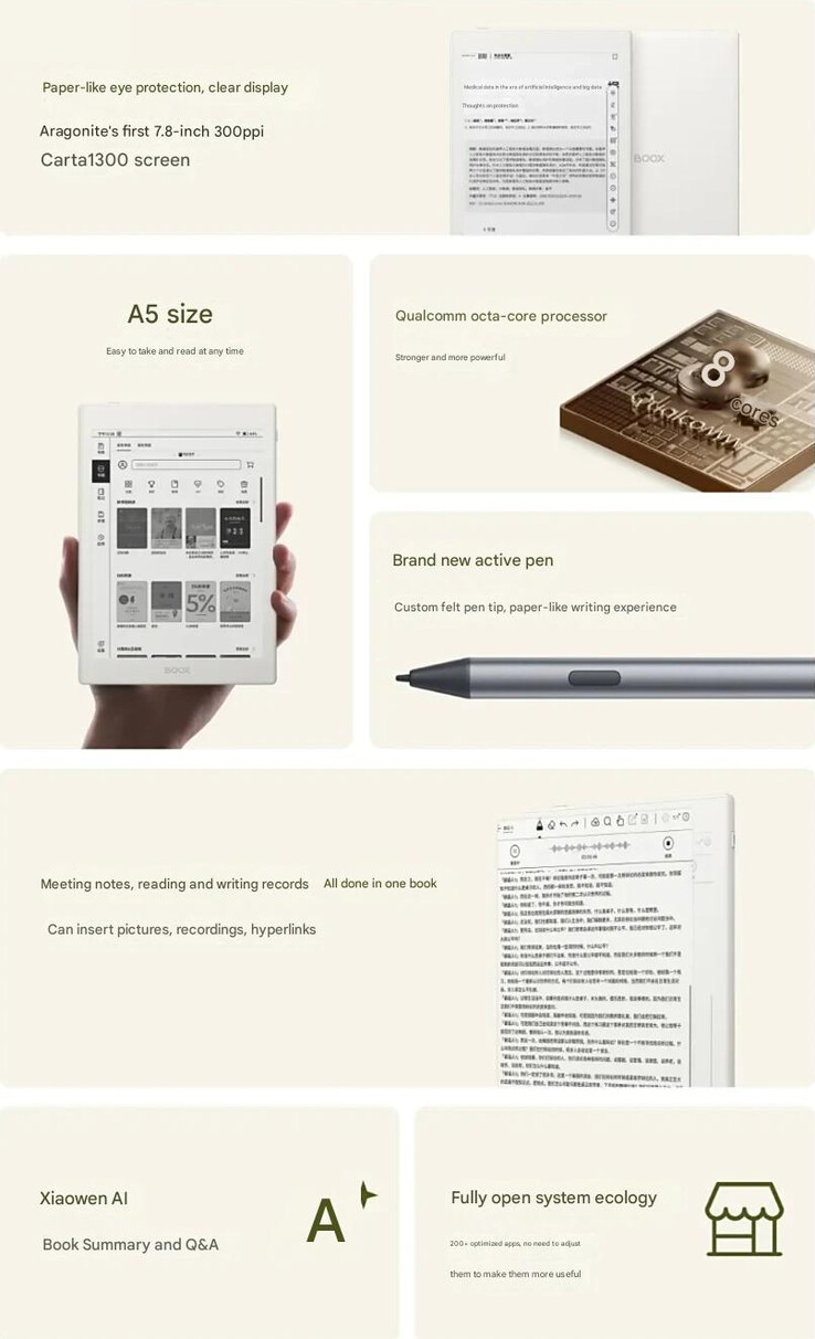 中国メーカーOnyxは、電子ペーパー端末「Boox」シリーズに新モデル「Note X5 Mini」を追加しました。7.8インチのCarta 1300パネル(1,872×1,404、300PPI)を搭載し、手帳サイズに近いコンパクト設計が特徴です。4096段階の筆圧に対応するスタイラスも利用可能で、読書・メモ・アイデア整理など幅広い用途に向いています。