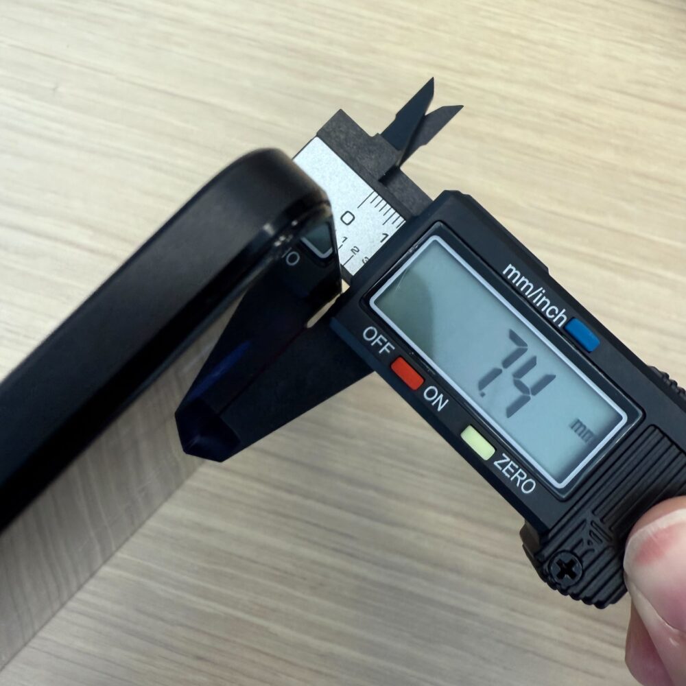 厚さは実測で7.4mmです。
