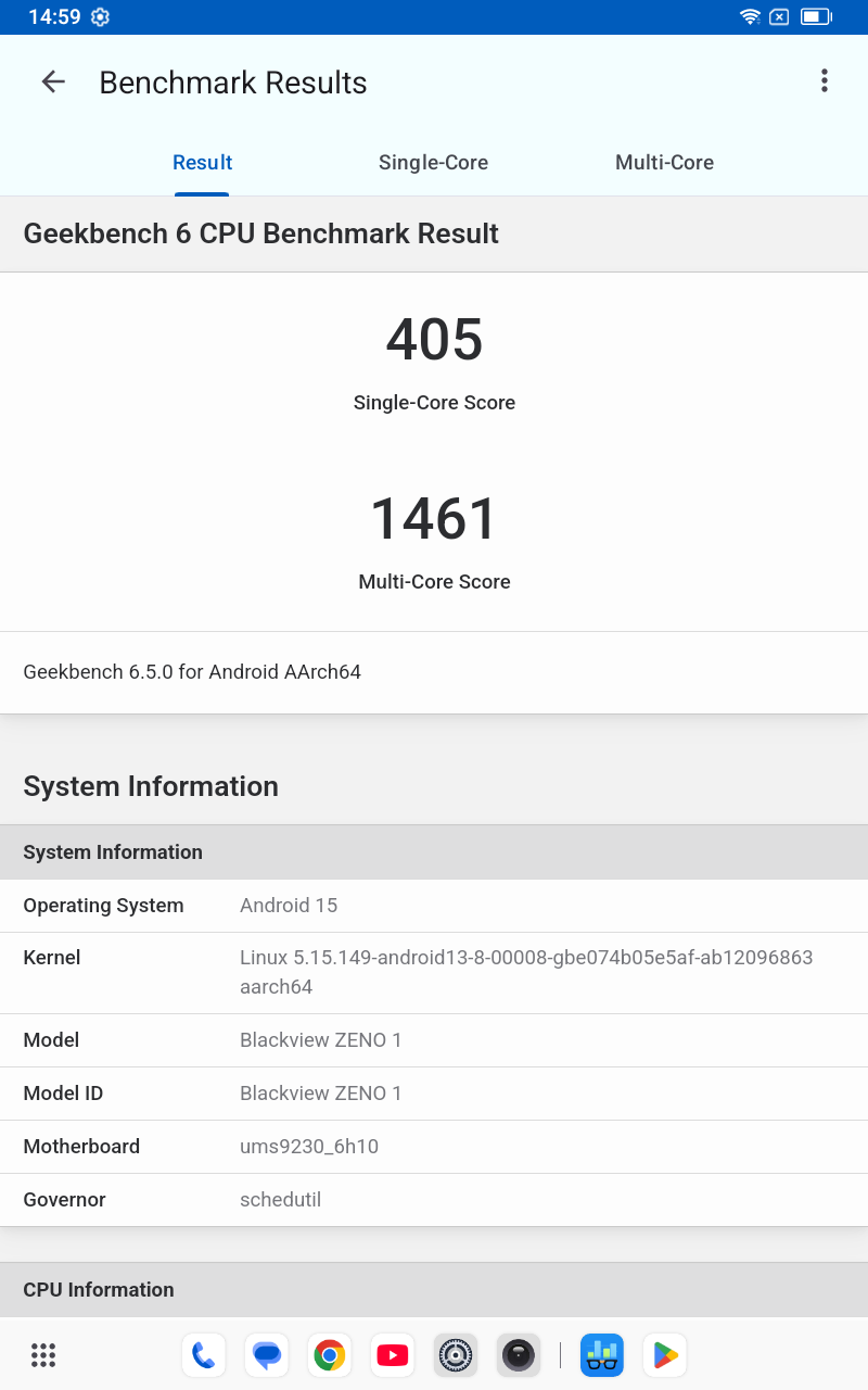 | UNISOC T615 | Blackview ZENO1 | 405 | 1461 |