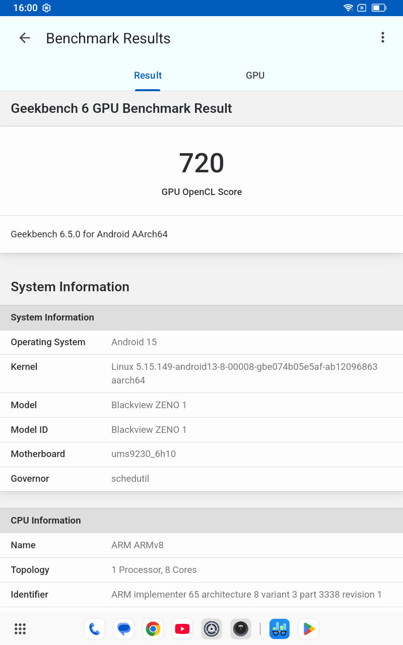 | UNISOC T615 | Blackview ZENO1 | 720 |