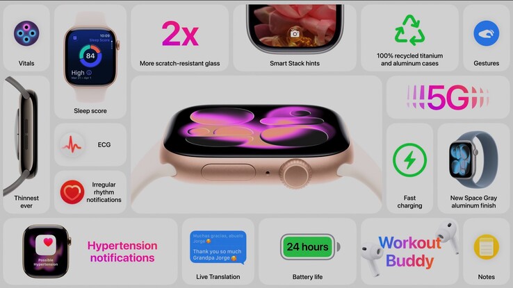 健康機能ではAI解析による高血圧通知を追加。光学式心拍センサーから30日間のデータを解析し、異常を検知すると通知される仕組みです。米国ではFDA未承認ながら、臨床研究に基づいた実装とされています。