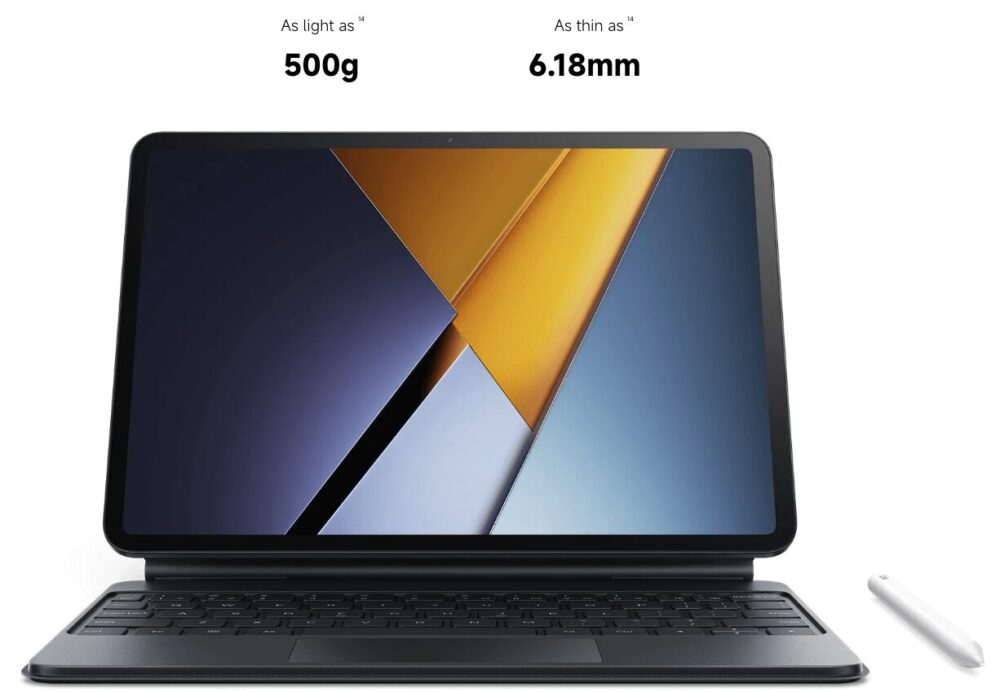 筐体は251.22×173.42×6.18mmで、11.2インチ級としては厚みを抑えた部類です。3:2の比率を採る関係で、横持ち時の縦方向が広くなり、短辺173.42mmは一般的な16:9系タブレットより“持ったときの存在感”が出やすい設計です。重量は500gで、軽量タブレットのように片手で長時間持ち続ける前提というより、机上利用やスタンド、キーボード併用でバランスを取る方向が現実的です。